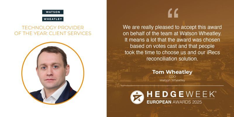 Watson Wheatley have won the Technology Provider of the Year: Client Services award at the Hedgeweek European Awards 2025